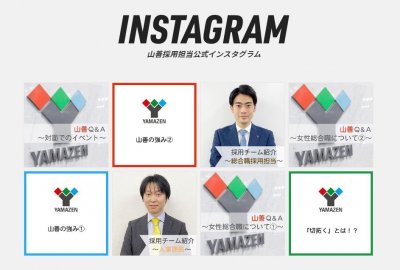 「山善採用担当公式インスタグラム」の発信内容をリアルタイムで更新している他、各事業部が運営するSNSやサイトをまとめています。