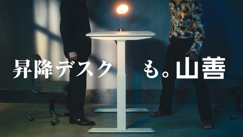 画面の最後には「昇降デスクも。山善」というクレジットを挿入。このCMが、山善が生活シーンを快適に便利に彩る商品を多数取り扱っていることの気づきになれば、との思いを込めました。「も。山善」の第2弾、第3弾のTVCMも予定されていますので、ぜひご期待ください!