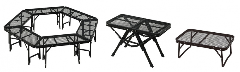 「タフライトテーブル」シリーズは、天板の金属製のメッシュ構造が特長の水や熱に強い“タフ”なテーブルです。急な雨も気にせず使用できる仕様となっているほか、ダッチオーブンなどの高温になる調理器具もそのまま置くことができます。また、スタイリッシュなデザインに加え、軽量かつコンパクト収納が可能なので、自宅の庭でゆっくりしたい時などに、都度、好みの場所に設置して使用できることも魅力です。
