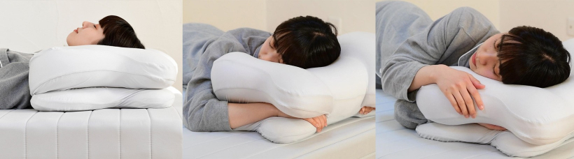 さらに、寝る姿勢がすぐに決まるので、仰向けや横向きに寝るとき、うつ伏せなど、どのような寝方をしてもくつろぐことができます。また、上部と下部の隙間に手をいれることができ、細部まで寝心地の良さにこだわりました。