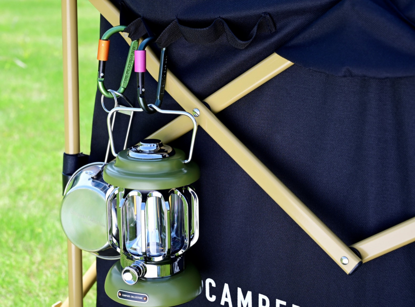 キャリーワゴンの側面にカラビナループ(※2)を採用しました。ランタンなどのアイテムを掛けるなど、側面を有効活用した運搬も可能です。