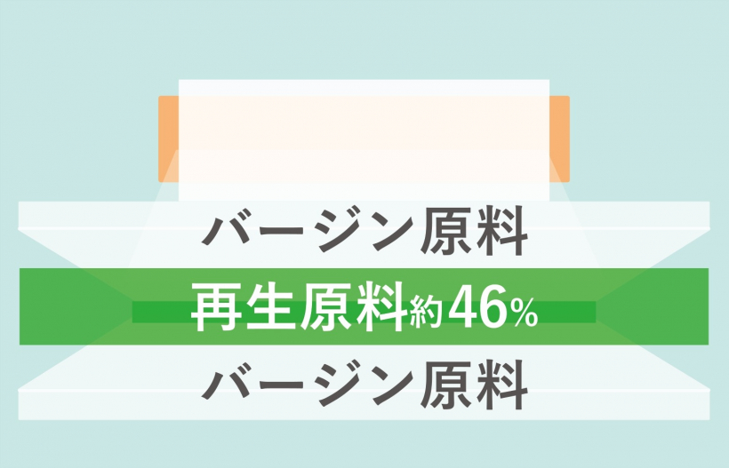 また、ストレッチフィルムのストレッチ性や切れやすさ、フィルム同士の貼り付きやすさなどの使用感にもこだわり、約46%の再生原料をバージン原料で挟んだ3層構造としています。