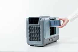 配管工事不要でポータブルながら「マイナス10度の冷風※1」でパワフルに冷房。「リチウムイオンバッテリー YBD-5A」1個装着で約30分、4個の場合は約2時間の連続運転が可能です。さらに、ACアダプターにも対応しているため、コンセントに差して連続使用も可能です。