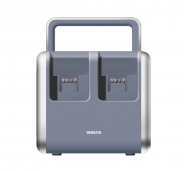 一度に4個の「リチウムイオンバッテリー YBD-5A」を充電できる「充電ステーション」を今秋より発売予定です。リチウムイオンバッテリー装着時は、ポータブル電源としても活用でき、AC電源の商品を繋いで使用できます。また充電は、AC電源のほか、ソーラーパネル充電に対応しており、アウトドアや災害時にも使用可能です。