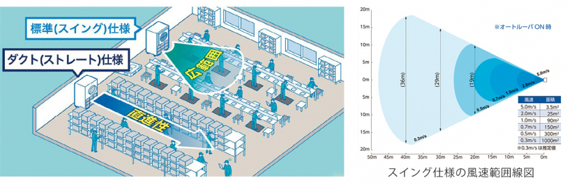 ☑ルーバー付きのスイング仕様とストレート仕様(ダクト取付可)の2機種をラインナップ