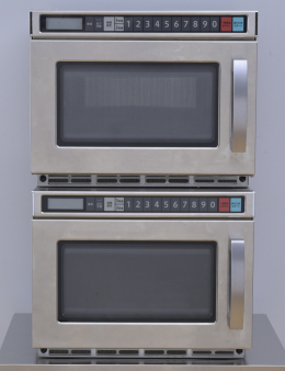 「業務用電子レンジ」は、当社で初めて電圧200ボルトを採用し、業界最高クラスの高周波出力となる1,900ワットを実現しました。当社従来品よりも調理時間を約50パーセント短縮し、約10パーセントの電気代削減につながります※1。時間短縮により、速さが求められるレストランやお昼時に混雑するコンビニエンスストアなどで活躍します。さらに、業界初※2となる“1,000通り”のプログラムメモリー機能を搭載。頻繁に使用する調理時間と出力の組み合わせを記録し、メニューキーを押すだけで自動的に調理がスタートします。また、付属の連結用固定金具により、「業務用電子レンジ」を2段積みすることができ、複数台を省スペースで設置できます。ドアの耐久性も高く、当社独自の開閉試験では約30万回の試験をクリアしています。