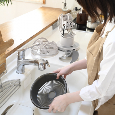 「サーキュレーター」は、工具不要で前面ガードや羽根、背面ガードが簡単に取り外せて水洗いが可能ですので、いつでも清潔にご使用いただけます。