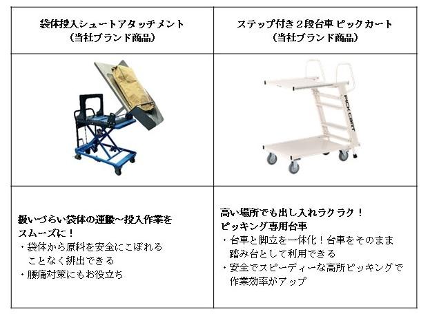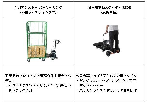 作業効率を向上させる製品群も多数展示いたします。カゴ車を軽い力で牽引できる「牽引アシスト車 スマリーリンク」、高い位置のピッキングを楽に行える台車「ピックカート」、扱いづらい袋体の運搬から投入をシームレスに行える「袋体投入シュートアタッチメント」、そして台車に取り付けができる電動スクーター「台車用電動スクーター RIDE」など、現場作業員の負担を軽減するアイテムを実際にご体感いただけます。
