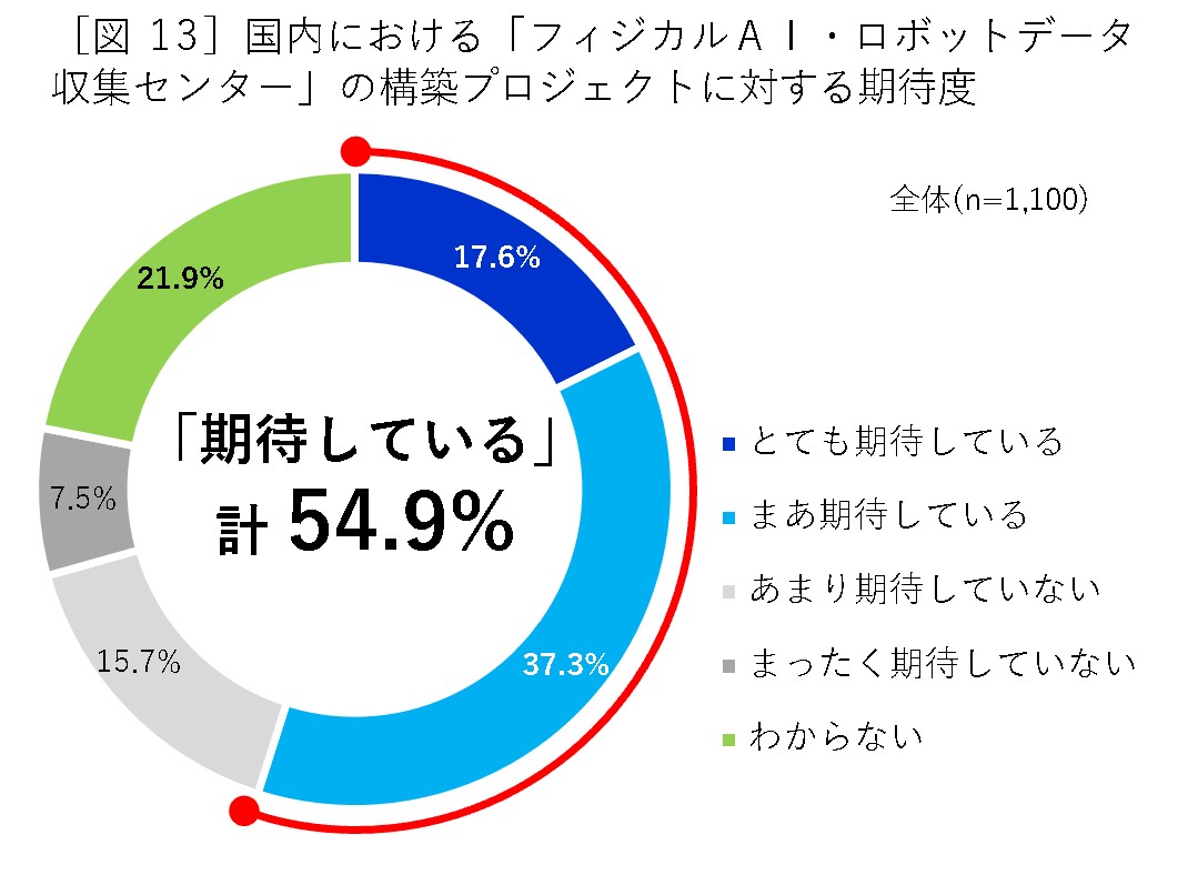 ・54.9%と過半数が「フィジカルAI・ロボットデータ収集センター」構築プロジェクトに前向きな評価。