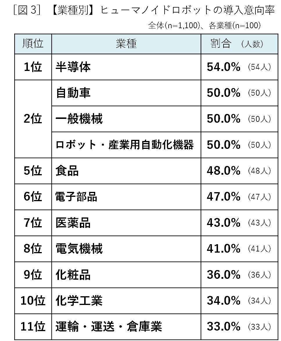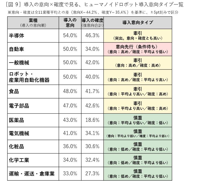 ・「半導体」は導入の意向・導入の確度がともに最も高く、ヒューマノイドロボット導入の牽引役に。