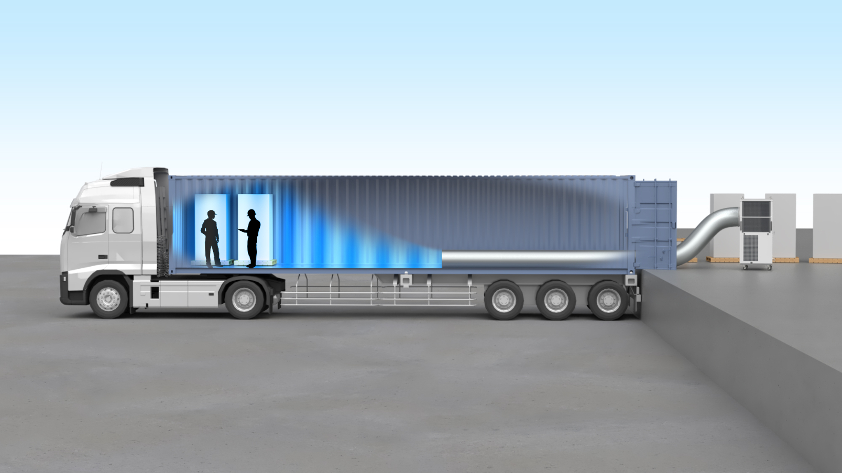 送風口にダクトフランジを取り付け、ダクトを接続することで冷風をダイレクトに届けます。コンテナからの荷降ろし(デバニング)作業時のコンテナ内の冷却などの集中冷却に活用できます。