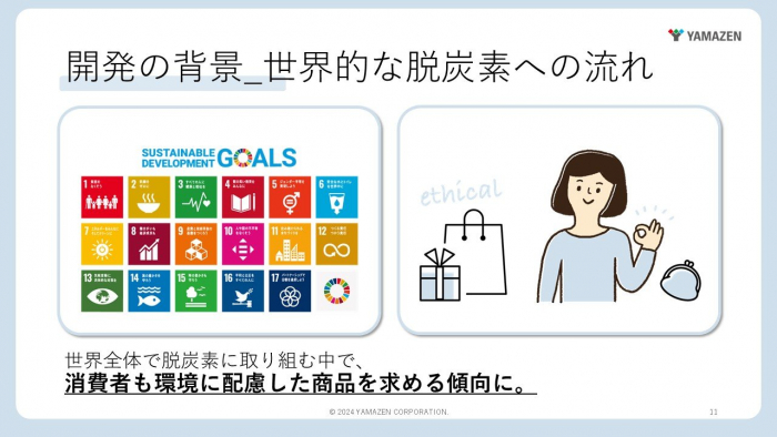 また、消費者の「社会課題の解決につながる商品やサービスを購入したい」、と考える「エシカル消費」に対する意識の高まりからも、脱炭素に対応した商品開発への対応も、メーカーには求められている。