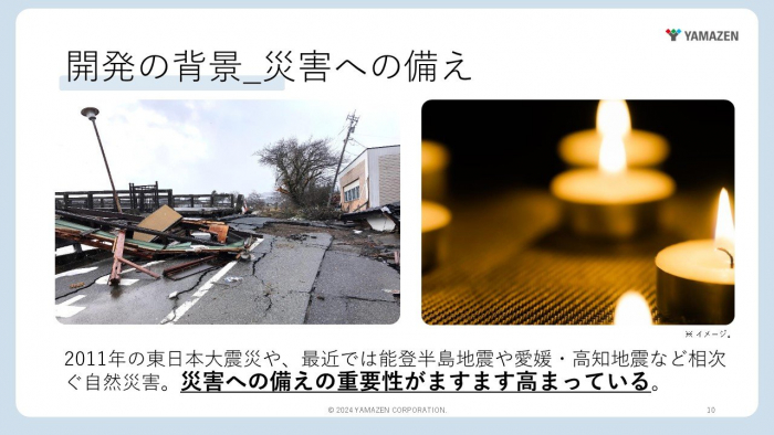地震や台風といった自然災害によりライフラインがストップすると日常生活に制限がかかり、状況によっては命に関わる問題となる。スマートフォンの充電が切れてしまうと、情報を得ることも家族と連絡を取ることも難しくなる。冷暖房が使えない場合は熱中症や凍死につながる恐れがある。