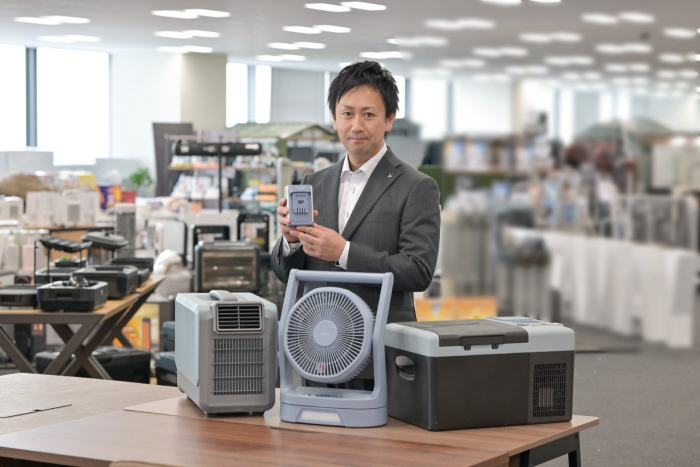 工業機械・産業機器、住宅設備機器などの専門商社でありながら、家電メーカーという新たなジャンルを切拓いてきた山善。その商品開発を担うのは、「MD(マーチャンダイザー)」と呼ばれるスペシャリストたち。自社工場でものづくりを行う一般的なメーカーの開発職とはかなり異なる山善の「MD」について、太陽光エネルギー活用で共通バッテリーに蓄電できる家電シリーズ「ELEIN(エレイン)」について先日発表した村上(夏物家電担当)に話を聞いた。