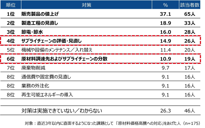 直近では、「エネルギー価格高騰」や「物流費高騰」への対応も上位に浮上。