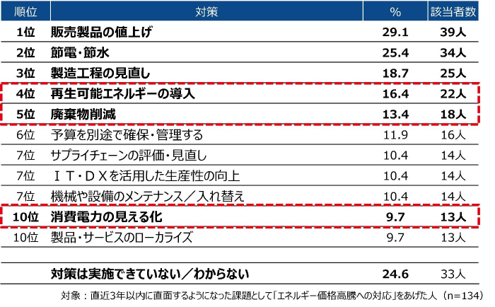 6位から4位に上がった「エネルギー価格高騰への対応」については、ロシアのウクライナ侵攻を背景に、2022年の春ごろから法人の電気代が高騰し、経営を圧迫していることが理由だと考えます。当社でも顧客企業から省エネ設備のお問い合わせは非常に増えています。